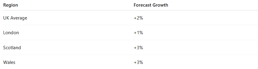 The regional house price forecast for 2026 highlights a clear north-south divide.